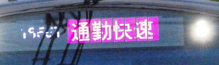 通勤 快速 – Tsukin Kaisoku o Commuter Express escrito en el panel frontal del tren