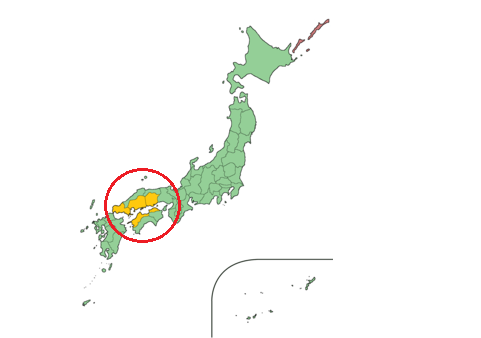 Mar interior de Seto frente a Kagawa en el círculo.