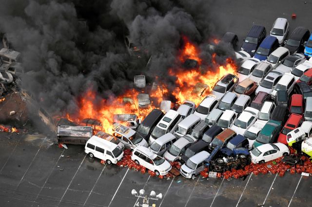 100 carros se incendiaron en Hyogo.