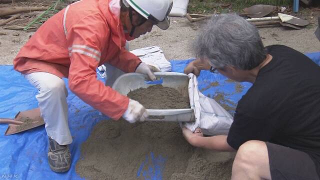 11.30 hrs NHK informa que los vecinos del barrio de Bancho en Takamatsu, prefectura de Kagawa, se han embolsado 4 toneladas de arena para levantar muros de protección frente a sus viviendas en previsión de inundaciones por las fuertes lluvias.