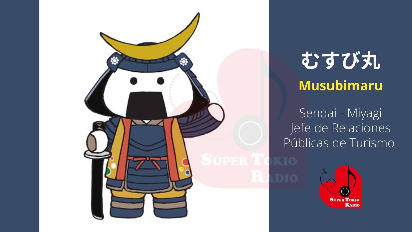 Es un «onigiri» debido a que la prefectura de Miyagi es una región productora de arroz. Musubimaru lleva un «kabuto», un casco tradicional en forma de media luna igual al que utilizaba Masamune Date, un samurái y soberano feudal, quien fundó la ciudad de Sendai. (Súper Tokio Radio)
