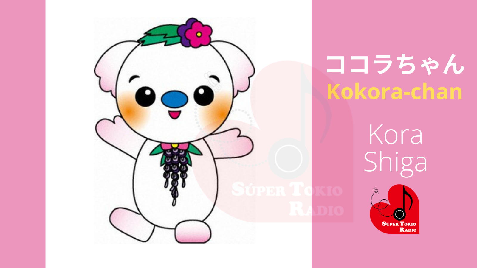 Historia: La mascota es un koala por el parecido con el nombre de la ciudad, «Koala – Kora» y su nombre es la mezcla de ambos Ko+kora. Apareció en público por primera vez en el año 2005 en el festival de las glicinas, una bellas flores moradas que en Japón se les conoce como «Fuji» y es por eso que lleva un collar de adorno de esas flores.