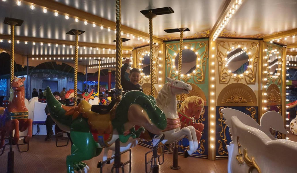 Por supuesto, todos los demás juegos mecánicos también están iluminados con luces de encantadores colores.