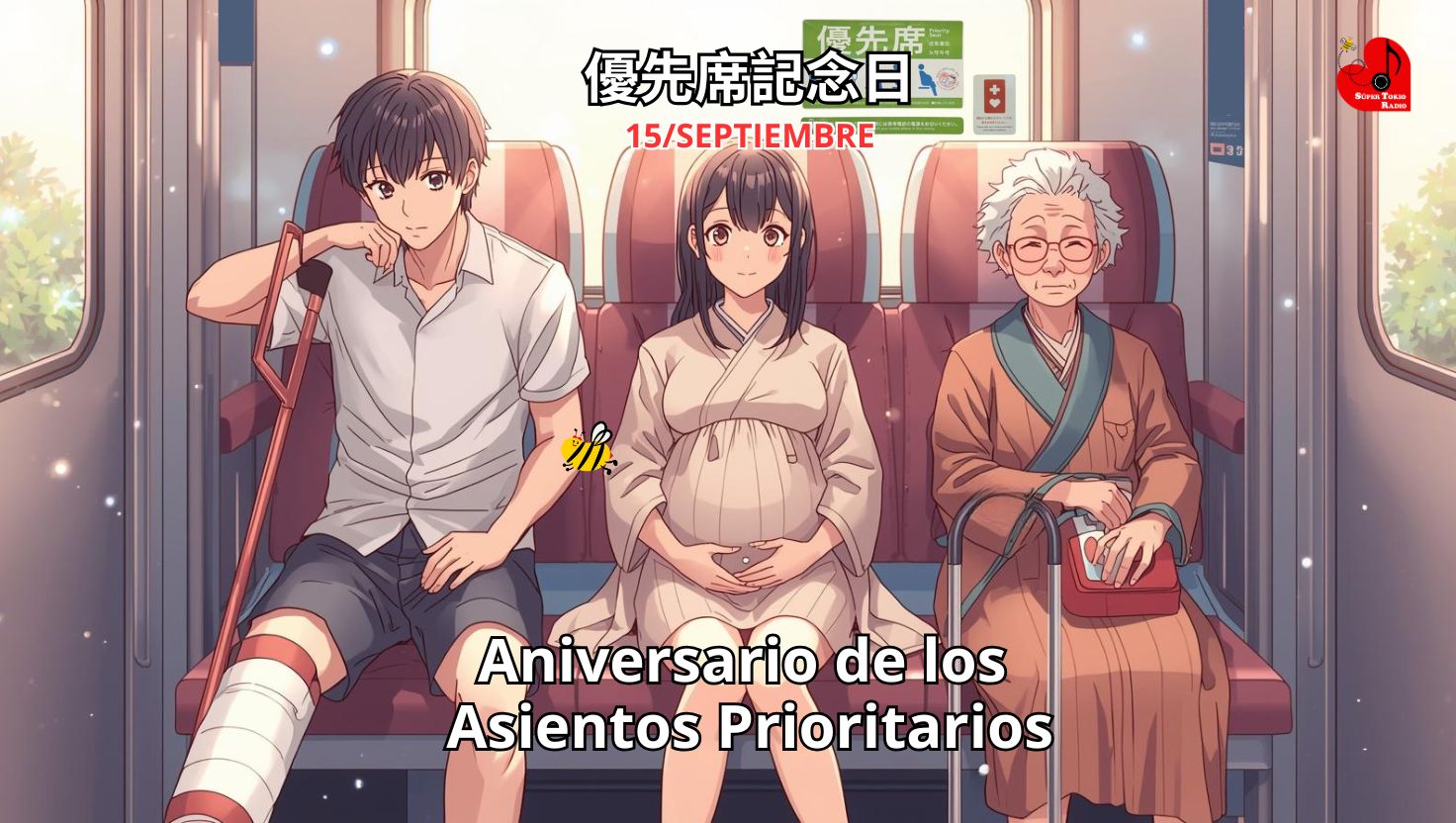 Hoy 15 de septiembre es el Aniversario de los Asientos Prioritarios「優先席記念日 Yuusen seki Kinembi」en recuerdo de la instalación, en 1973, de los primeros asientos prioritarios para personas mayores y con discapacidad en los trenes de la línea Chuo en Tokio. En aquel entonces, esta fecha coincidía con el Día del Respeto a los Mayores (敬老の日, Keiro no Hi), que actualmente se celebra el tercer lunes de septiembre.