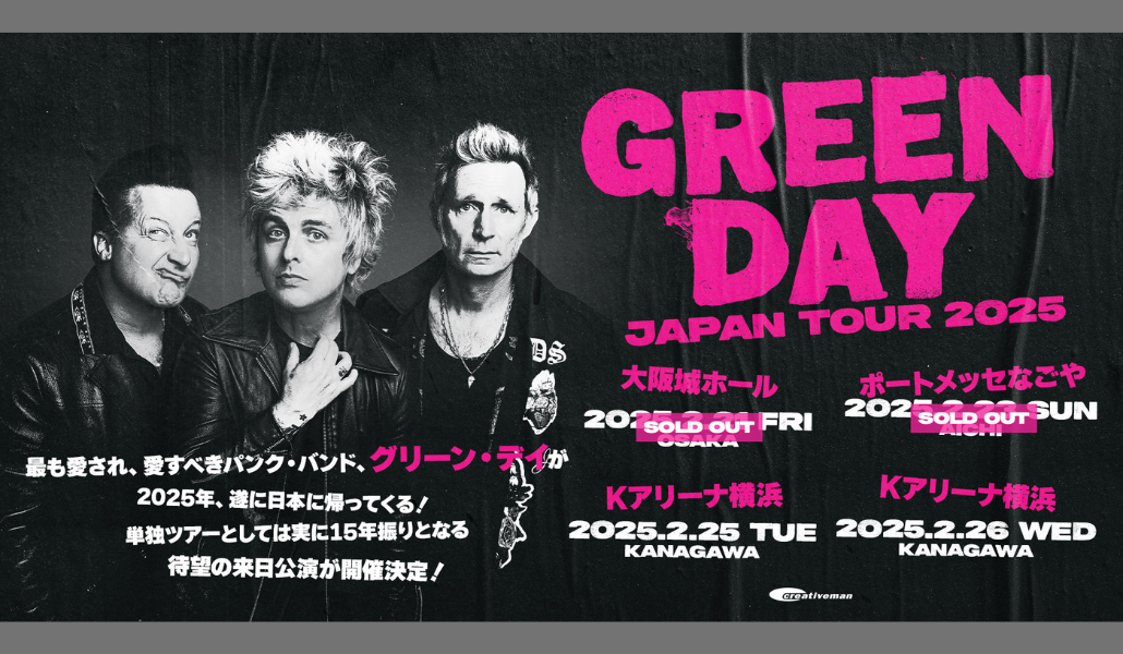 「Green Day Japan Tour 2025」 Fechas: 21/23/25/26 de febrero de 2025 Horario día 21: OPEN 18.00 / START 19.00 Lugar: Osaka-Jo Hall Horario día 23: OPEN 16.00 / START 17.00 Lugar: Port Messe Nagoya Horario día 25: OPEN 17.30 / START 19.00 Lugar: K-Arena Yokohama Horario día 26: OPEN 17.30 / START 19.00 Lugar: K-Arena […]