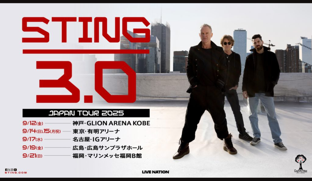 Sting regresará a Japón este 2025 con su nueva gira STING 3.0, que contempla seis conciertos en cinco ciudades del país.
