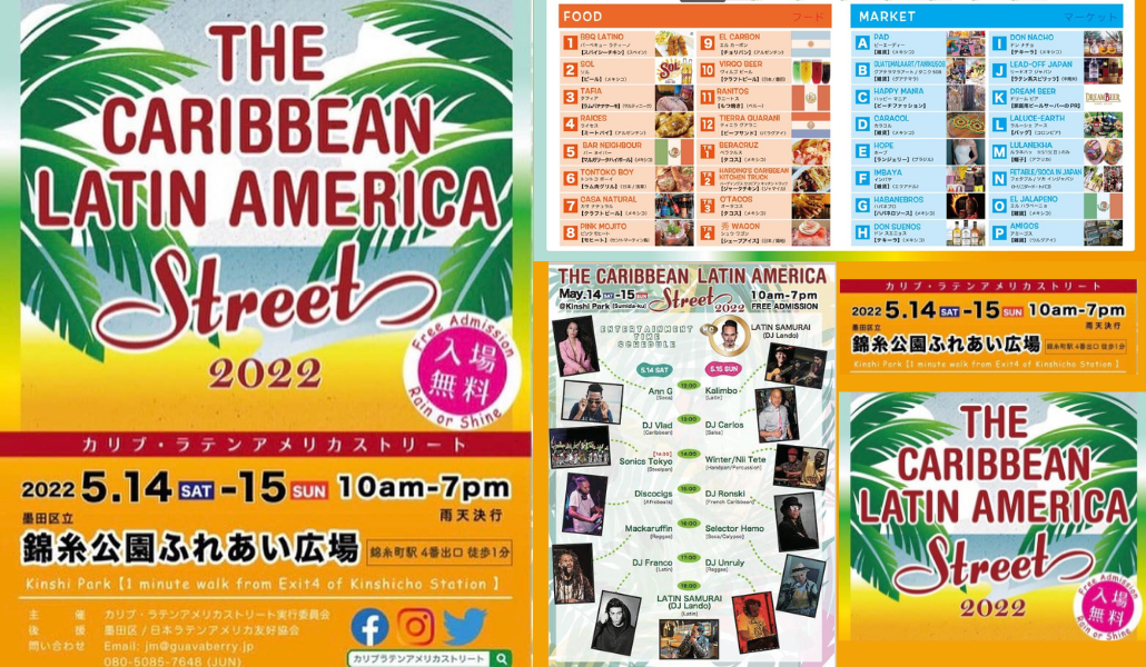 「カリブ・ ラテンアメリカ ストリート 2022, Caribbean・ Latin America Street 2022」 Fecha: 14 y 15 de mayo Lugar: Parque Kinshi (plazuela) Horario: 10.00 – 19.00 Acceso: A 1 minuto de la estación Kinshicho (Tokyo Metro) Entrada: Gratis https://www.facebook.com/TheCaribbeanLatinAmericaStreet Descripción: Esta es la oportunidad de sentir el auténtico ambiente caribeño-latinoamericano en pleno Tokio. Música, baile, comida, artesanías y […]