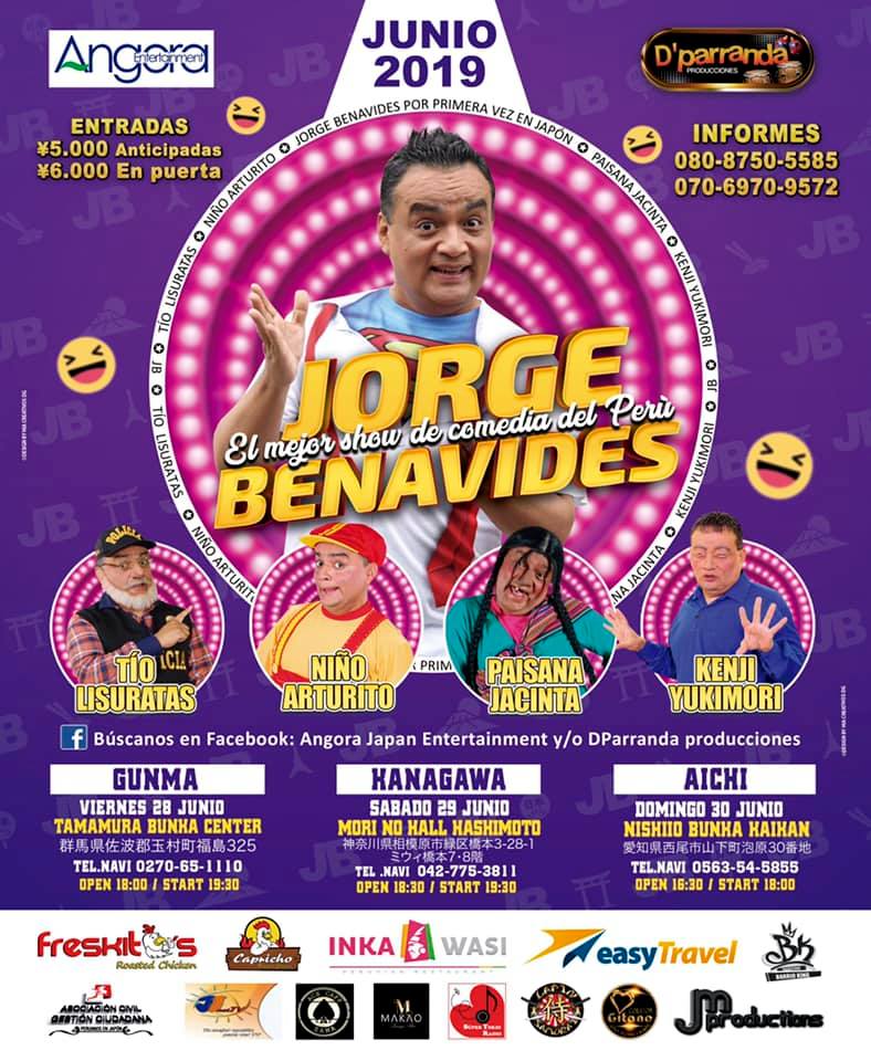Jorge Benavides (JB), uno de los cómicos más populares del Perú, llegó este jueves a Japón para realizar esta misma semana tres presentaciones en escenarios de las prefecturas de Gunma, Kanagawa y Aichi. Con él también arribó Wálter «Cachito» Ramírez, conocido integrante del elenco de JB.