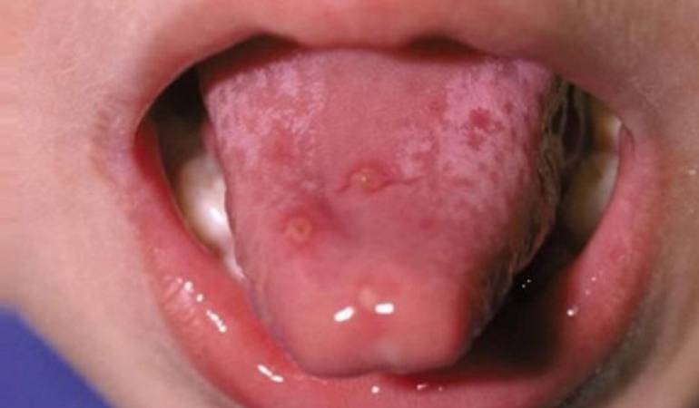 El mal es más frecuente entre los niños pequeños, se presenta con sarpullido parecido a la sarampión y es bastante doloroso por la aparición de ampollas en la boca y hasta en la garganta que además dificultan el paso de alimentos y líquidos.